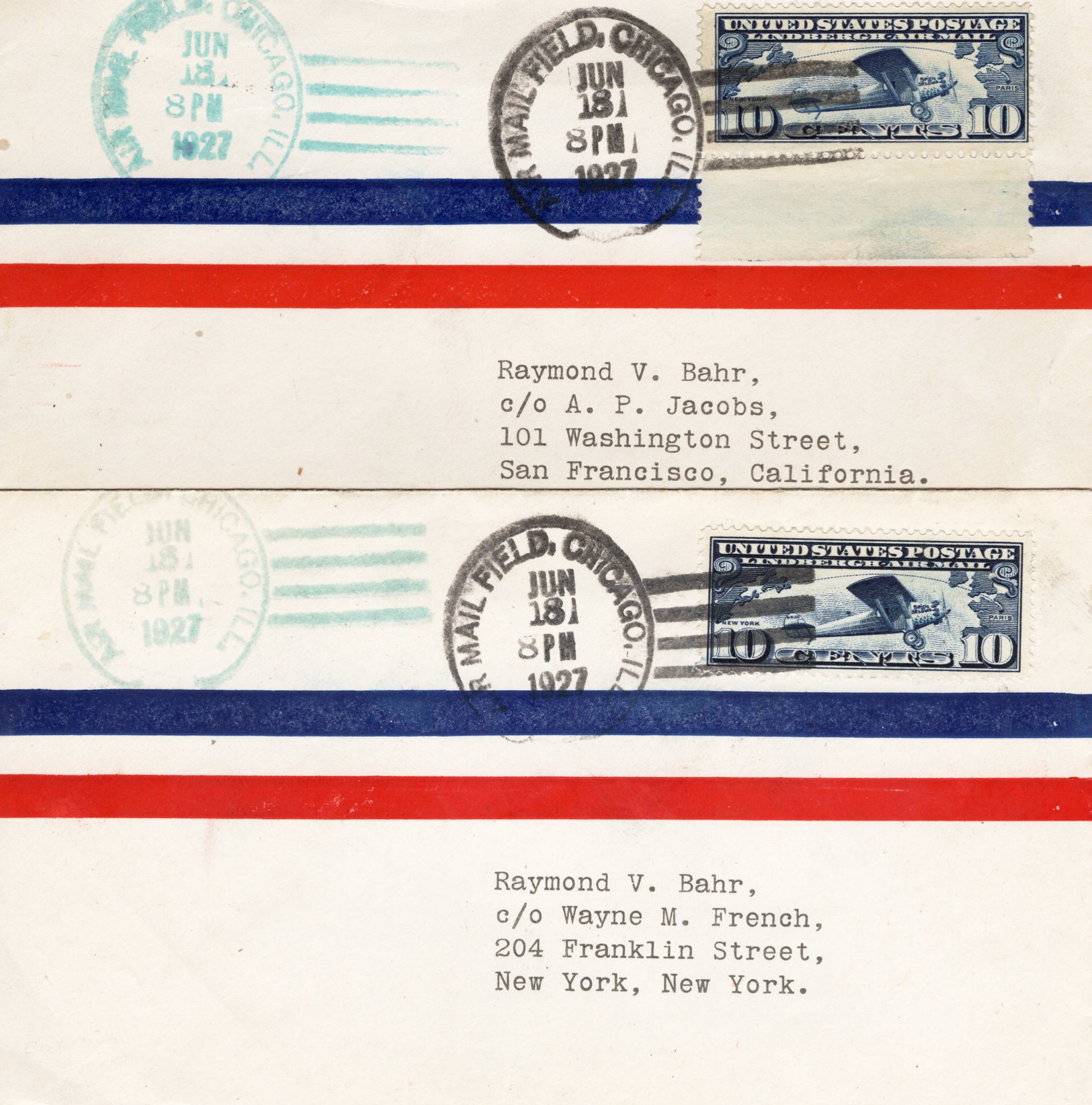 Chicago AMF unofficial C-10 FDCs to San Fran and NY